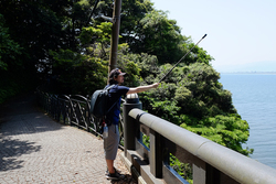 撮影に同行してくれたのは、編集部の二次元担当(?)こと押野くん。ところが彼、現地に着くなり、やたら江ノ島に詳しいのだ。なんでもプライベートで何度も遊びに来ているのだとか。そんな馬鹿な!二次元の世界の住人だと思っていたのに!そう言われてみると今日のファッションも爽やか過ぎるぞ!