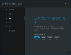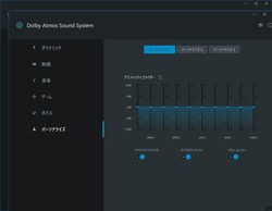 まずは、Dolby Atmos® サウンド・システムに関して。こちらはスピーカーに加え、専用のドライバー&ソフトを搭載しているのだが、調整ソフトがとてもシンプルで扱いやすい。設定としては、「映画」「音楽」「ゲーム」「ボイス」というプリセットが用意され、さらにインテリジェントイコライザー設定によって「ディテール」「バランス」「ウォーム」「フラット」というサウンドキャラクターのチョイスも行うことができる。