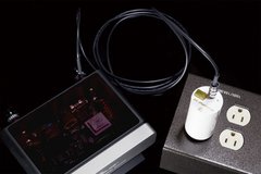 続いて、QNR 3.1を試聴する。本機は電源ノイズ低減器で、ACの空きコンセントへ挿すだけで使用することができる。電源に孕むノイズを瞬時に検出し、位相の歪みを補正、またその際に検出されたノイズ成分をLEDの光に変換する、という仕組みになっており、内部は8つのLEDと接続されたコンセントの電源波を検出するプロセッサから構成されている。