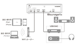 この方式の接続方法は、まずSoundgenicをLANケーブルでネットワークに参加させる。次にSoundgenicとUSB-DACをUSBケーブルで接続して、最後に操作アプリを立ち上げる。たったこれだけの作業でUSB-DACをネットワークプレーヤー化できる。