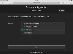 fidata Music Appを使うと、USBメモリーやUSBストレージからのデータ読み込みも簡単だ。Soundgenic背面のUSB端子にドライブを接続すれば、あとはアプリからの操作で楽曲の取り込みが行える。