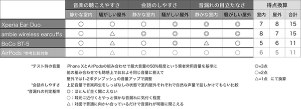 ●総合点で比べるとどのモデルもAirPodsと同じ、あるいは上回った