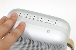 早速本体を手にしてみると、丸みを帯びたボディがなんとも愛らしい。アルミボディに付けられたレザー製ストラップもまた、筐体デザインの持つキュートさをより一層引き立てている。本体と一体化してフラットに配されたシンプルな操作ボタンは、同社のアイコニックなアンプ製品「Beomaster 6000」のデザインを継承したという。ボタンの一部には「スマートボタン」が装備され、音楽再生/一時停止のほか、専用アプリ「Beoplay」を用いて通話応答や、Siri/Google アシスタント等へのアクセスにも変更可能となっている。