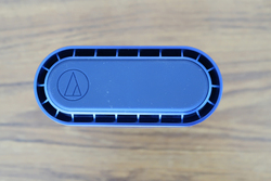 スキットルをひと回り大きくしたようなAT-SBS50BTは、φ40mmのフルレンジユニットを1基搭載。こちらもパッシブラジエーターを2基搭載するが、AT-SBS70BTとは異なり縦置き/横置きの2とおりの設置に対応する都合上、底面と天面(横置き時は左右側面)に1基づつ割り当てられている。音を拡散させる役割のディフューザーも同様だ。