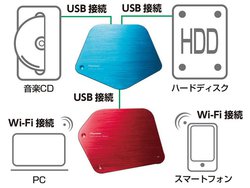 ワイヤレスユニットは、光ディスクドライブ(DVD/CDドライブ)を接続し、音楽CDからスマホやHDDへ楽曲をPCレスでワイヤレスリッピングすることもできる。もちろんそのままリッピングせずにCDを聴くことも可能だ。