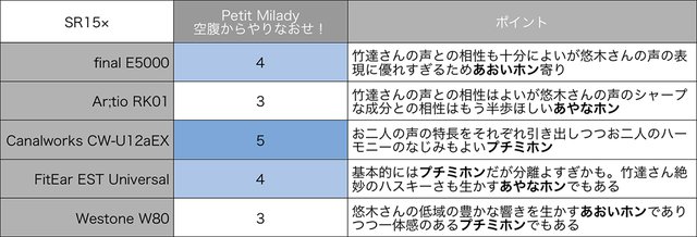 SR15とのコンビネーションでpetit milady「空腹からやりなおせ!」の魅力を最も引き出した優勝イヤホンは……