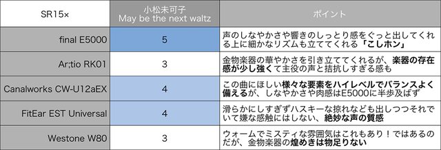 SR15とのコンビネーションで小松未可子さん「Maybe the next waltz」の魅力を最も引き出した優勝イヤホンは……