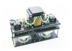 他のオーディオ・ノートのエレクトロニクスと同様、配線材は全て銀製である。しかも銀線を撚って、シルクの絶縁体を被せ、それをジャケットで覆うという念の入れようである。段間コンデンサはオーディオ・ノート内製の電極に銀箔を使用したもので、制振処理がなされている。出力トランスの線材も銀で、ひとつひとつ丁寧に自社生産を行っている。なお、本機はメイン電源とヒーター電源を分けているので、各個体に2本の電源ケーブルが付属する。