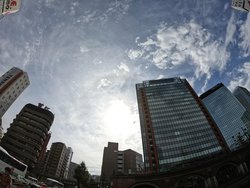 同じ場面でスーパーフォトをオフにすると、雲の立体感が損なわれて平面のように見え、また太陽に近い部分がより白く飛んでしまった。建物も暗くなり、全体的に眠くなった印象に感じる。どうやらスーパーフォトは、単なるHDRというわけではなく、コントラストやシャープネスなどの調整も自動的に適用しているようだ。後処理をしなくても静止画の画質が綺麗なのは素直に嬉しい。