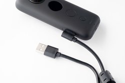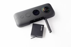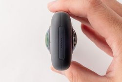 まず下位機種である「Insta360 ONE」(関連ニュース)と比べてみよう。ひと目でわかる違いはデザインだ。本体は長方形になり、リコー「THETA」に少し似ている。スマートフォンには編集・リモート撮影の専用アプリが用意され、Bluetooth+Wi-Fiのワイヤレス接続か、有線での接続が行える。なお本体サイズは48W×28H×115Dmmで、質量は115gとなる。