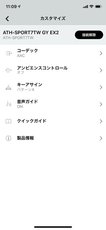 アプリはスマホとイヤホンのペアリング操作をガイドしてくれるだけでなく、ペアリング後もスマホからの様々な本体設定がアプリから行える。例えばホーム画面にはイヤホンのバッテリー残量やコーデックの接続状態、そしてATH-SPORT7TWの場合はヒアスルーの動作状態が表示される。