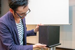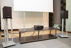 付属スピーカーは木製エンクロージャーを採用した、25mmトゥイーターと120mmウーファーの2ウェイ・バスレフ型となる。