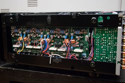 筐体内の回路・基板構成は基本的にLR各チャンネルを左右対称に配置したシンメトリカルなもので、セパレーションの向上と正確な空間再生に貢献しそうだ。出力はチャンネルあたり230W(6Ω)に及び、FRONT(CH3端子)出力については4Ωのスピーカーも不安なく駆動できる点も心強い。