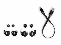 UA FLASHはスポーツ向けモデルだけに、長時間快適に使えるフィット感も重要だ。イヤーウイング一体型のスタビライザーはS/M/Lサイズを用意。さらにイヤーチップは独自の「フレックスフィット」で、これもS/M/Lの3サイズが用意される。