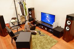 今回は6畳サイズのスペースに5.1chのサラウンドシステムを構築してみることにした。組み合わせはA190+A180+A125C+A100P。最も大きなA190でも、外形は260W×1,070H×390Dmm/22.6kg、細身のA180なら230W×1,000×315Dmm/17.3kg。大人の男性なら1人で苦労なく持ち運びが可能なサイズ感で、セッティングにおいても苦労はない。