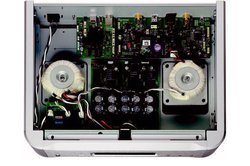 ハイレゾ音源を走らせる(再生する)内蔵ネットワークモジュールと、その他のデジタル回路用には、2つの独立した大容量トロイダルトランスを搭載。また、大容量フィルターコンデンサー、ショットキーバリアダイオード、1F(100万μF)の大容量キャパシターなど、贅沢な部品で構成されたリニア電源部と組み合わされている。また、ネットワークプレーヤーというと、NASに入っているハイレゾデータを再生するイメージが強いが、Spotifyなどのストリーミングサービスにも対応している。