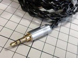 ケーブルは見るからにゴツくてハイエンド。導体は日本で製造される軍需用の高純度銅だそうだ。太さはどうにもならないが、編み方がいい感じなおかげか、感触は意外と柔軟。取り回しもさほど悪くない。