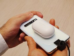 Galaxy Budsの紹介に話を戻そう。本体のバッテリーはUSB Type-Cケーブルによる有線チャージのほか、Qi規格をベースとしたワイヤレスチャージにも対応する。なお、次期「AirPods」もワイヤレス充電が噂されているが、本機はこれを先取りした格好だ。またUSB PDの機能をサポートしており、15分の急速充電で約40分の音楽再生が楽しめる。