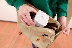 形状は円柱タイプで、持ち運び用のポーチが付属する。質量は708gと、ちょっと大きめではあるが、細身のショルダーバッグにもスポッと収まるので持ち運びに問題はないはずだ。バッテリーで最大3時間駆動するので、外出先で使うにも十分な時間だろう。もちろん、電源さえ確保できればバッテリーを気にせず使える。