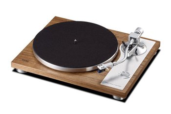 ターンテーブルの駆動系は、薄型のブラシレスDDモーターを開発。マイコン制御によるフィードバック回路を用いて水晶精度の速度偏差を得ている。プラッターはアルミダイキャスト製で、フェルトマットが付属。キャビネットは高密度MDFをコア材に用いており、アルミ削り出しの金属製シェルを採用したインシュレーターをこれに直に固定し、高いハウリングマージンを実現した。外装の表面仕上げは、多層塗りピアノブラックまたは天然ウォルナット突き板仕上げの2バージョン。ケーブルは直出しではなく、付属RCAケーブルによる。したがって、この部分のグレードアップは後々可能だ。