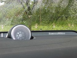 運転席に座って真っ先に目に飛び込んでくるのがダッシュボード中央に配置されたトゥイーター内蔵のセンタースピーカーだ。これはBowers & Wilkinsのホーム用スピーカーに倣った “トゥイーター・オン・トップ” の技術を採用したもので、さすがにダイヤモンド・トゥイーターとまではいかなったが、十分な存在感を醸し出している。