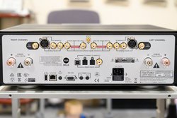 近年のプリメインアンプの世界的な潮流は、高効率で省スペースのデジタルアンプやDクラスアンプの搭載だ。これは筐体のコンパクト化や開発コストの抑制などが要因として考えられるが、マークレビンソンは未だこだわりのアナログ方式、そしてもちろんディスクリート回路構成である。プリ部はデュアルモノラル構成のAクラス増幅、パワー部はABクラス増幅で、出力は125Wx2をギャランティーする。