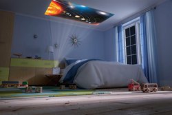本機は背面からHDMI接続ケーブルが飛び出すことなく、電源ケーブルの接続も側面なので、特別な配慮なく、上方に向けて設置および投写が可能。就寝前に寝ころびながら天井に映し出した映像を楽しむことができる。