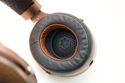 イヤーパッドにはしっとりと肌に吸い付くような質感のフルグレインレザーを用い、20mm厚のメモリーフォームクッションとの相乗効果で高いフィット感を実現。本革であるフルグレインレザーは音の拡散効果があり、ドライバーのある内側には不要な音を吸収するクロスを用いることで、イヤーカップ内の残響を適度に抑えサウンドバランスを整えている。