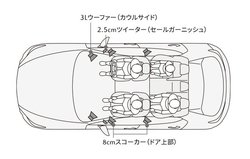 MAZDA3で注目すべきはフロントスピーカーの配置だ。トゥイーターとミッドレンジはドア内にビルトインするが、ウーファーユニットは車両前方コーナーにあるカウルサイドに設置した。しかも、ユニットは専用エンクロージャー内に収めている。これにより、倍音効果も期待でき、低域の再現性を最適化することが可能となった。