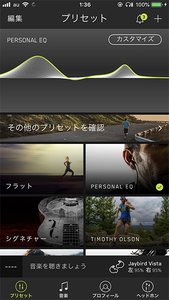 素の状態で十分に高音質なVISTAだが、さらに、Jaybird製のイヤホン向けスマホアプリ「JayBird App」による音質チューニングも活用したい。以前から「フラット(デフォルトの状態)」や「シグネチャー」、「TIMOTY OLSON(同名のウルトラマラソンのランナー提供のプリセット)」などの多彩なチューニングのほか、個人の耳にサウンドを最適化する「パーソナルEQ」機能も搭載されているのだ。