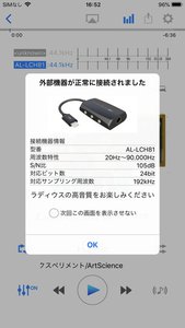 なお、アップサンプリングでの出力は最大382kHz/32bitまで可能だが、接続したDACの性能に依存するかたち。今回の例では「AL-LCH81K」が192kHz/24bit対応のため、192kHz/24bitでの出力となっている。
