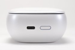 続いて、完全ワイヤレスイヤホンとしての基本性能部分を、バッテリーまわりから順に見ていこう。イヤホン本体のみでの連続再生は約10時間。それをケースで約5回フルチャージできるので、合計再生時間は約60時間となる。ケースの充電端子はUSB-C。イヤホン本体もケースもバッテリー切れの状態から10分の充電で1時間以上の再生が可能な急速充電にも対応。このあたりも、現在の完全ワイヤレスイヤホンの中でもトップクラスであり文句なし。
