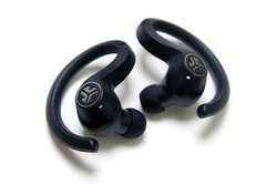 装着スタイルは、3モデルそれぞれに異なっている。JBuds Air Executiveは、先端にマイクを載せたスティック状の本体を耳穴下のくぼみにフィットさせて固定する、アップルのAirPodsによく似たデザインだ。JBuds Air Sportは安定したフィット感が得られるイヤーフックタイプ。そしてJBuds Airがオーソドックスな耳栓タイプになる。