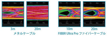 さらに、この性能が5mを超え20mでも維持されるのも光ケーブルならではの特徴で、画期的だ。同社の資料によると、HDMIケーブルの信号伝送純度の指標となるアイパターンは20mでも非常に鮮明で、短尺と変わりない性能を示す。メタルケーブルではどれだけ頑張っても追いつけない、光だけの世界だ。