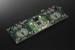 Grandioso D1XとK1Xに搭載されたMaster Sound DACと名付けられた変換部。特にD1Xでは信号伝達が等距離になるよう、32組の回路エレメントを2つの扇型にならべて配置。ひとつひとつのエレメントは、抵抗、ロジックIC、電源回路などすべての構成部品を32回路分独立させている。