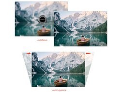 設置性としては、ズーム機能こそ非搭載なものの、オートフォーカスと自動縦台形補正機能を備えており、電源を入れたら自動的にピントの合った投写が行える点も魅力だ。角度調整はアジャスターフットにより100%、115%、130%オフセットの3段階で調整できる。