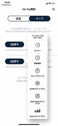 「My Tap」で割り当てられる機能の選択肢はなかなかユニーク。1回押し/2回押しにそれぞれ、Siri(ボイスアシスタント)、ヘッドセットのステータス、タイマー、ストップウォッチ、時刻通知、Spotifyプレイリスト、Apple Musicプレイリスト、Deezerプレイリストをセットできる。