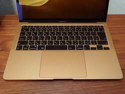 MacBook Air(2020年モデル)も、シザーメカニズム採用のMagic Keyboardが、正確で安定したタイピングを実現するキーボードとして好評を博している。筆者の手元には新MacBook Airもあるので、同じMagic Keyboard同士を比べてみた。キーの高さが、ややMacBook Airの方が肉厚なので、打鍵のインパクトも柔らかめに感じられた。あとは好みのレベルだろう。