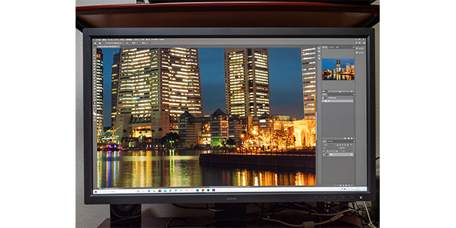 大きく高精細な画面は、写真の作業画面とインターネットのブラウザを同時に表示させるなど、デュアルモニター感覚で使うこともできる。大画面モニターならではの便利さだ。