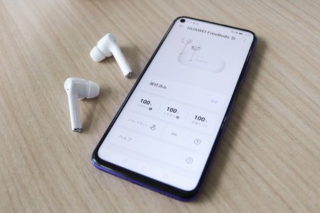 本機は、もちろんファーウェイ以外とのスマホとも接続が可能。充電ケース側のボタン長押しでペアリング待機状態にできるというのは、2個の独立した本体がある完全ワイヤレスイヤホンとしては分かりやすい。ペアリング後の通常使用時も、フタを開けるとイヤホンが起動するので、耳に装着する頃には接続が完了して使用可能状態になる。待たされる感が無くサクサク使えるのも快適だ。