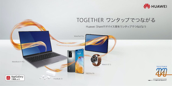 | ファーウェイでは現在、対象製品を購入するとスマートウォッチやスマートバンドなど、夏を楽しくするビッグな賞品が抽選で当たるキャンペーンを開催!お知らせはこちら! ■スマートウォッチ「HUAWEI WATCH GT 2e」 ・応募対象製品:「HUAWEI P40 Pro 5G」 ・当選者数:抽選で300名 ■スマートバンド「HUAWEI Band 4」 ・応募対象製品:「HUAWEI P40 lite 5G」「HUAWEI P40 lite E」 ・当選者数:抽選で各1,000名、計2,000名 ■JCB商品券5,000円分 ・応募対象製品 スマートフォン:「HUAWEI P40 Pro 5G」「HUAWEI P40 lite 5G」「HUAEI P40 lite E」 PC:「HUAWEI MateBook X Pro NEW」 タブレット:「HUAWEI MatePad Pro」「HUAWEI MatePad」「HUAWEI MatePad T 8」 オーディオ:「HUAWEI FreeBuds 3i」 ・当選者数:抽選で400名 キャンペーン応募方法 Step1:購入対象期間中に、店舗またはオンラインショップで購入 Step2:応募対象期間中に、キャンペーンサイトでお客様情報を入力 Step3:購入した製品のレシートを一口として購入証明の写真をアップ Step4:抽選でビッグな商品をプレゼント! キャンペーン開催のお知らせはこちらから 製品購入はこちらから ![]() |