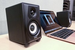 十分な小型さを維持しつつ、ドライバー構成は3インチウーファー+0.5インチトゥイーターの2ウェイ。メートル法換算で8cm弱+1cm強といったところだ。周波数特性のスペックとしては80Hz - 22kHzとなっている。周波数特性のスペックとしてはPM0.3eと同程度の低域、狭めの高域なのだが、実際の聴こえ方はそれほど単純ではない。