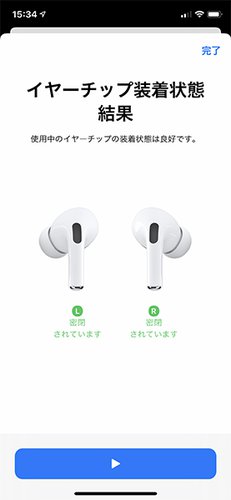 ちなみにiOSには、AirPods Proのイヤーピースのフィッティングをチェックしてくれる機能が用意されている。しかし筆者の場合、その機能で確認するとMとLどちらもOK判定。…いやどちらもジャストなんてわけはないんだから、これって本当はどちらも微妙に合ってないのでは? MとLの中間に本当のジャストサイズがあるのでは? と思わずにはいられない。