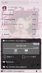 アプリの設定としては、「サーバー」にSoundgenicを、「レンダラー」にUSB-DACを選択すれば良い。接続するUSB-DACが何であろうと、この操作はまったく同一だ。