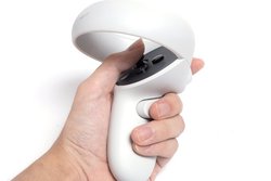 Questでは細い棒を持っているような感覚もあったが、よりエルゴノミクス感が強くなり持ちやすくなった。持ったときに親指を置いておける場所も用意。ゲーム中は人差し指/中指のトリガー操作が多く、親指でボタンを押さない場合も多いので、誤操作が起きにくそうだ。