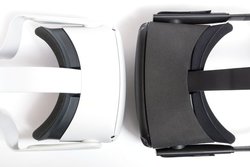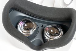 この他にも、低価格化により簡略化されたと見られる部分は多い。ヘッドセット本体の外周にはファブリックが貼られていたが、新モデルでは素のプラスチックに。フェイスパッドも従来はスポンジとファブリックを貼り付けたような構造だったが、新モデルではそのままのスポンジになっている。全体的な質感は若干チープ感があり、コストダウンを実感させられた。