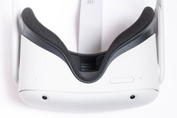 装着感としては、初代モデルが額と目の下の2点で固定する感覚が近い一方、Quest 2では本体もフェイスパッドも小型化されていることもあり、目の周囲全体で固定する感覚。ゆったりしたつけ心地のQuestと比較すると、少し窮屈に感じる。横幅の広い眼鏡だと、装着時に少し引っかかってしまう。一方で全体的にフィットしている感覚がするので、このあたりも好みが分かれそうだ。