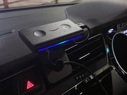セットアップの手順だが、まずはEcho Autoを置く場所を確保する。これは、エアコンの吹き出し口に差し込んで固定する「エアベントマウント」を利用するので、クルマにテープを貼ったりする必要はない。マウントが固定できたら、その上にEcho Autoを置いて設置完了だ。