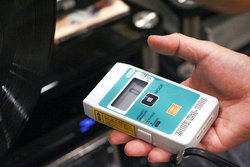 今回は同社へ伺って中園代表から解説を伺いつつ、静電気計測器を使ってどれくらい静電気がとれているか、計測しながら音を聴かせてもらった。