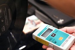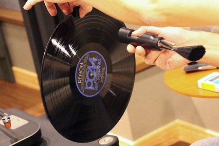 私が持ち込んだレコードをまずそのまま計測すると、デジタル表示には50,000台の恐ろしい数字が出た。まずブラシ部を盤面へ4点ほどチョンチョンとくっつけると、それだけで18,000くらいへ数値が下がる。聴いたのはドイツ・リートのレコードだったが、明らかに声が伸びやかさを増し、伴奏ピアノも朗々と鳴るようになる。